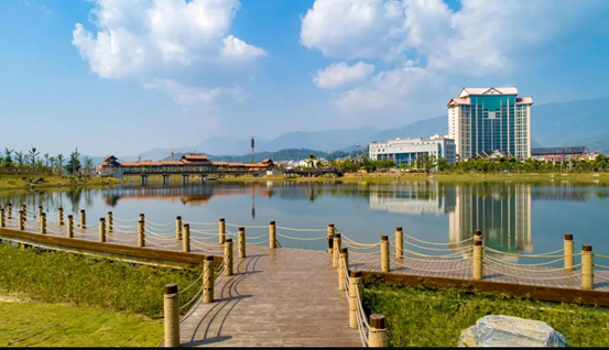 滄源縣葫蘆湖城市公園提質改造建設工程建設地點位于滄源縣城內耿滄二級公路旁,縣城東部,為EPC改建項目。該項目設計建成歷時兩年多,我院設計人員在項目前期多次對現(xiàn)場實際調研踏勘,深入翁丁部落采風,充分了解當?shù)厝罕姷囊庖娦枨?,從“以人民為中心”的角度出發(fā),挖掘項目潛力使觀賞性與實用性相結合,整體優(yōu)化景觀系統(tǒng)功能,營造生態(tài)與景觀綜合效益最佳的綠色空間,將滄源佤族自治縣葫蘆湖城市中央公園打造成集生態(tài)、文化、休憩、娛樂、健身等多功能為一體的綜合性公園,為祖國西南邊陲的人民營造良好的文化休閑場所,符合我國目前生態(tài)建設目標要求。
