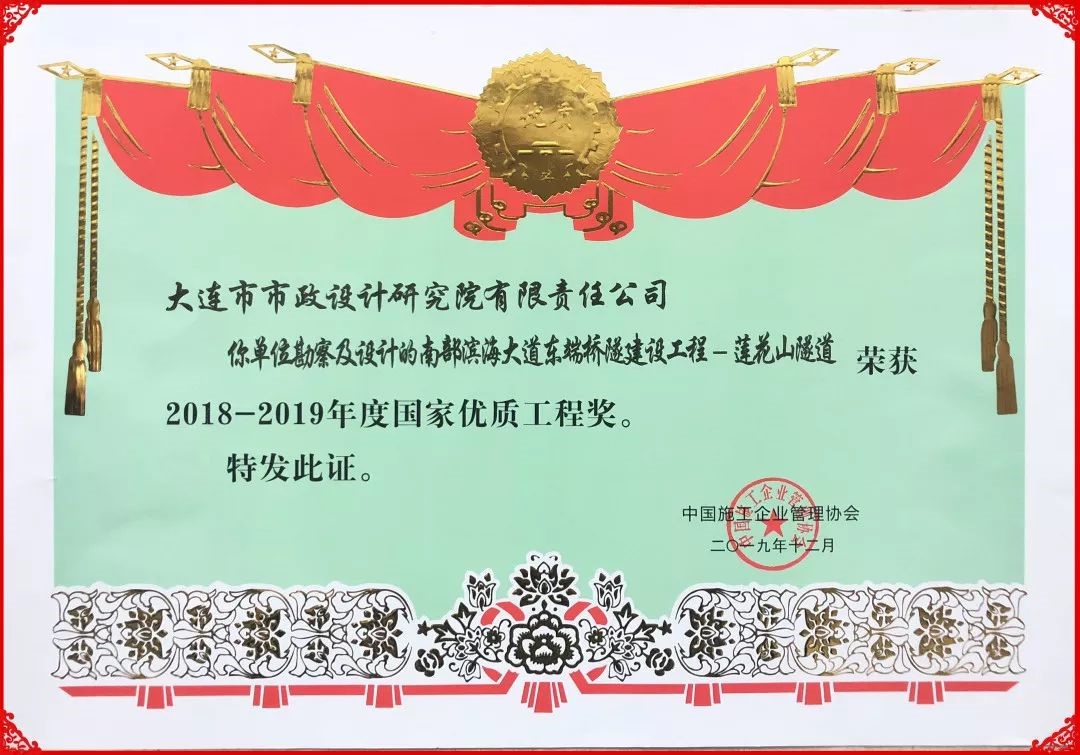 本工程榮獲2013年度大連市優(yōu)秀工程測量三等獎、2009年度大連市優(yōu)秀勘察設(shè)計(jì)項(xiàng)目三等獎。